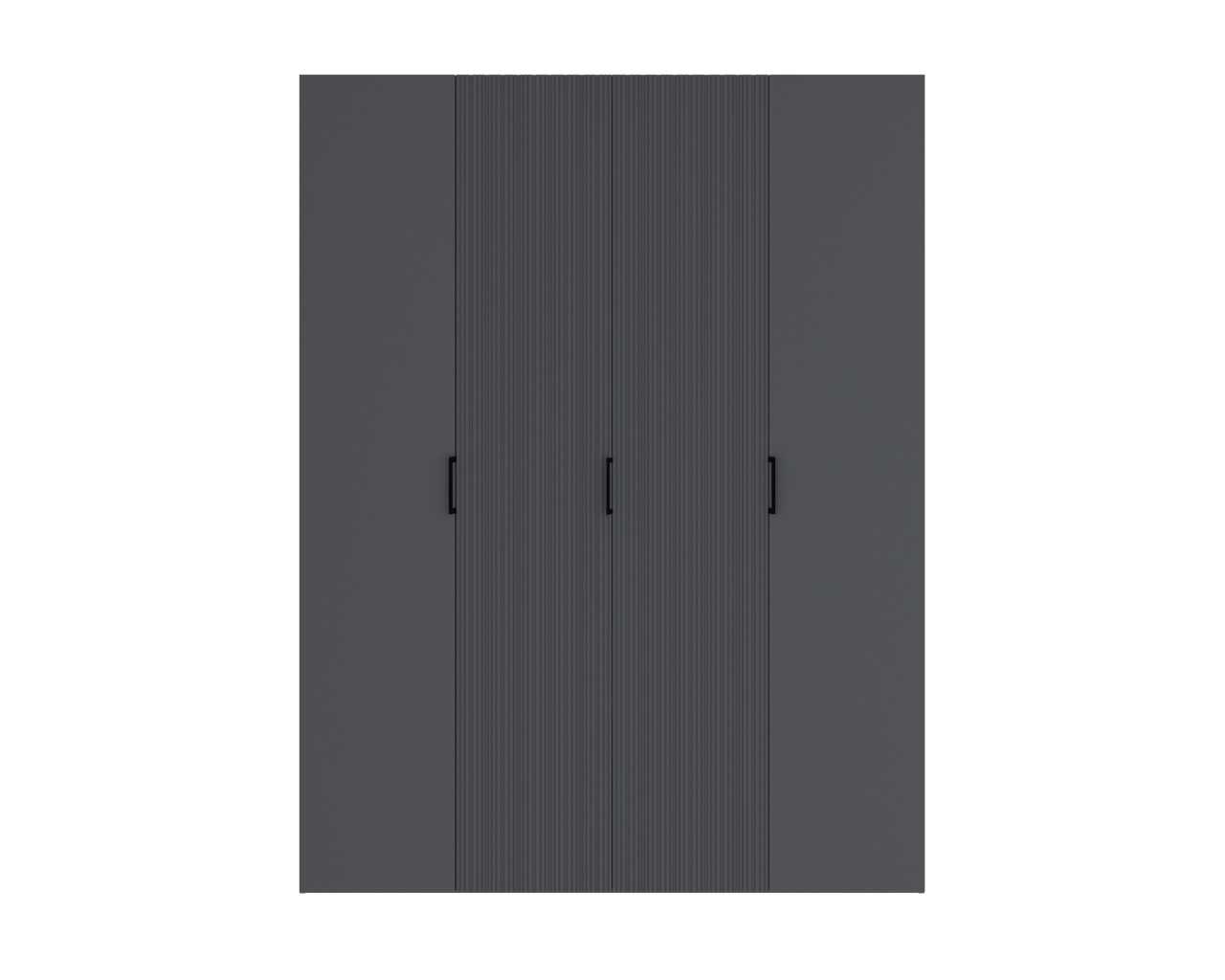 Четыре распашных фасада из матового МДФ «Хангва» образуют спокойное полотно, которое сочетается с корпусом цвета «Джара темная». Благодаря ширине 1772 мм шкаф воспринимается как полноценная гардеробная система — матовая фактура «съедает» лишний объем и делает модель визуально легче.